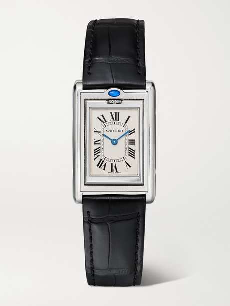 STEPHANIE WINDSOR + Cartier 2001 Basculante 34mm stainless steel and leather watch