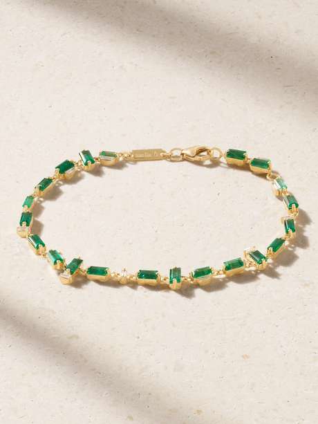 SUZANNE KALAN 18-karat gold emerald and diamond bracelet