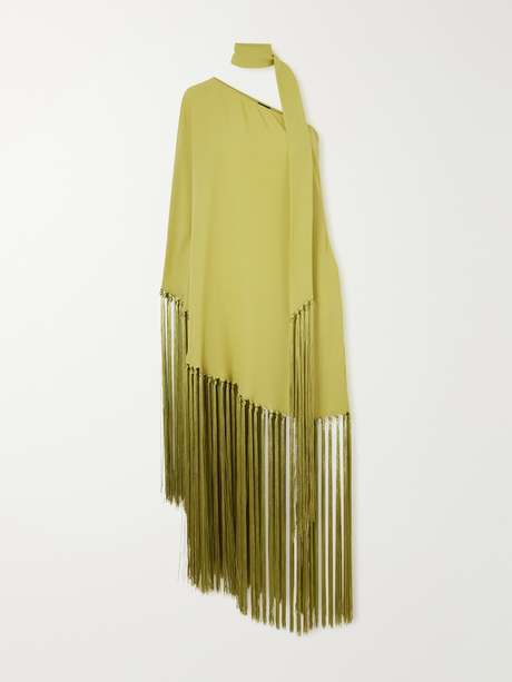 TALLER MARMO Gunilla one-shoulder scarf-detailed fringed crepe mini dress