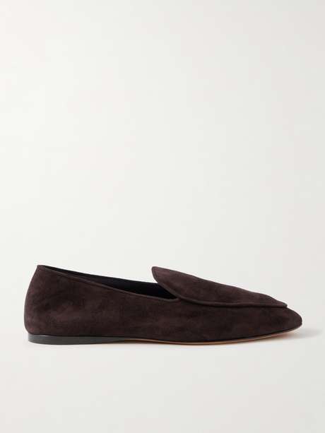 The Row's minimalist 'Awar' loafers are the kind you'll turn to time and again. They've been made in Italy from velvety suede and come in a chocolate hue that'll complement so many looks.