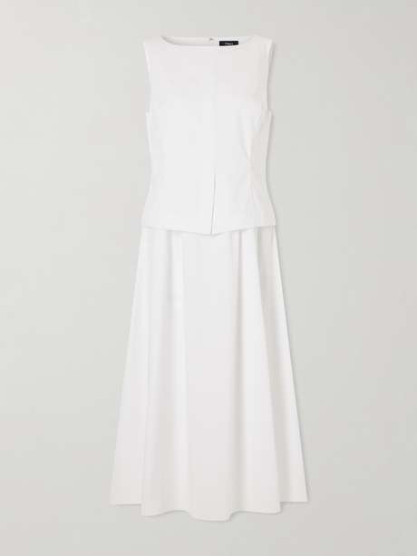 Theory's dress creates the illusion of separates through its layered construction. Made from cotton-blend poplin, it has a structured bodice with a center slit and a softly pleated skirt. Style it with mules.