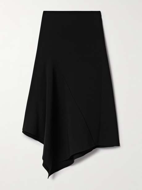 Theory's otherwise understated skirt is defined by its beautifully draped, asymmetric hem. It's made from panels of black crepe.