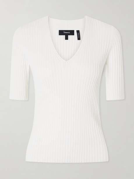 Theory focuses on high-quality fabrics and precise construction. This T-shirt is made from crepe with a delicate pointelle-knit pattern and features a V-neckline with a slim, fitted silhouette. Its versatile design pairs effortlessly with everything from jeans to tailored pants.