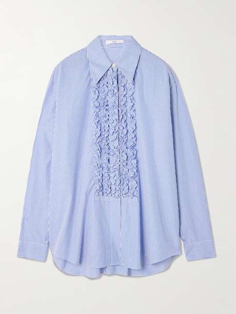 TIBI Ruffled pinstriped cotton-poplin shirt