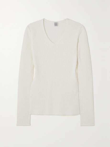 TOTEME's clothes are designed to slip seamlessly into your wardrobe, so you can build endless outfits around this sweater from the moment it's delivered. Bouclé-knitted for a tactile finish, it has a chic V-neckline and slim fit. Tuck yours into skirts or tailoring.