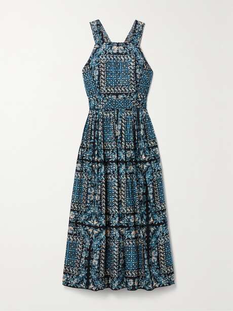 Ulla Johnson's 'Kerani' dress is printed with geometric motifs inspired by traditional bandanas. Cut from cotton-poplin, it fits slim through the quilted bodice before opening to a relaxed midi skirt and has cross-over straps at the low back. Style yours with lace-up sandals.
