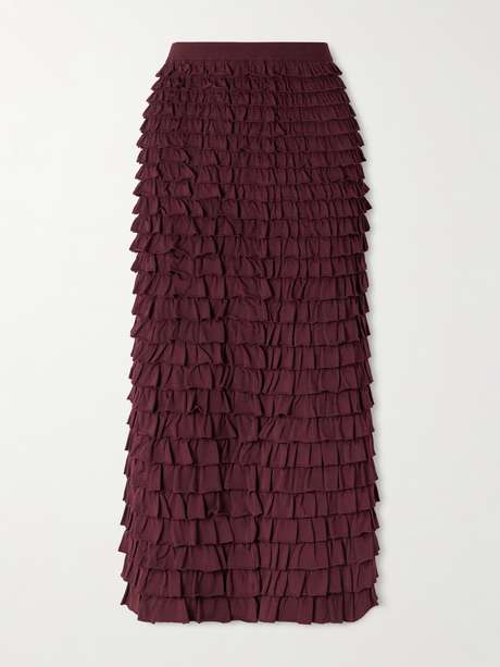 ULLA JOHNSON Mimi tiered ruffled jersey midi skirt