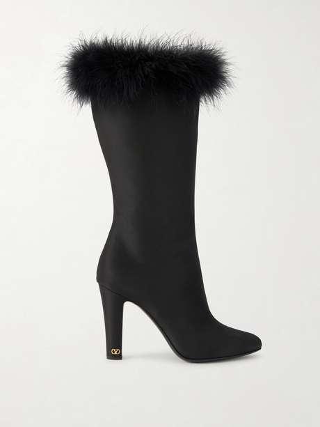 VALENTINO GARAVANI Hotty 100 feather-trimmed twill knee boots