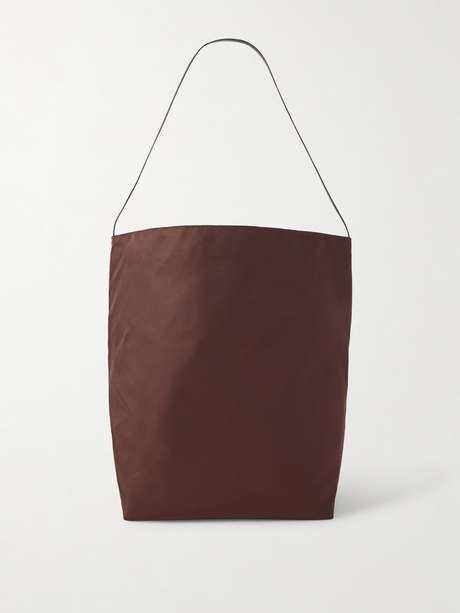 Valesque's 'Bucket' tote is perfectly practical for everyday. It's made from resilient shell with a pretty satin-like luster, and trimmed with leather straps. It'll fit a light cardigan, makeup pouch and book.