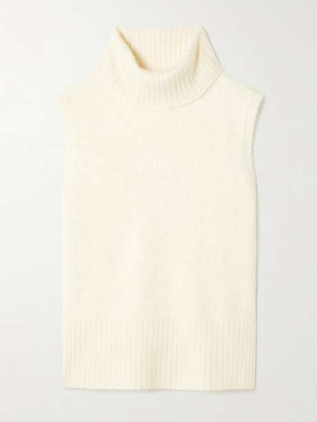 Veronica Beard's 'Mazzy' top is sleeveless, so it'll layer nicely under the label's slim-fitting blazers. It’s made from soft, gently brushed cashmere with ribbed trims and a cozy turtleneck. The ivory shade will complement most almost anything.