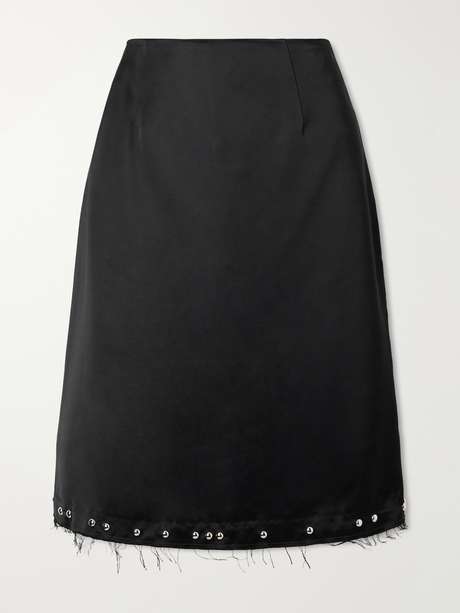 Wales Bonner's 'Iris' skirt is embellished with silver studs to match the coordinating camisole in our edit. Made from satin, it sits high on the waist and has a sleek column shape with a frayed hem. Lean into the undone vibe with sneakers.