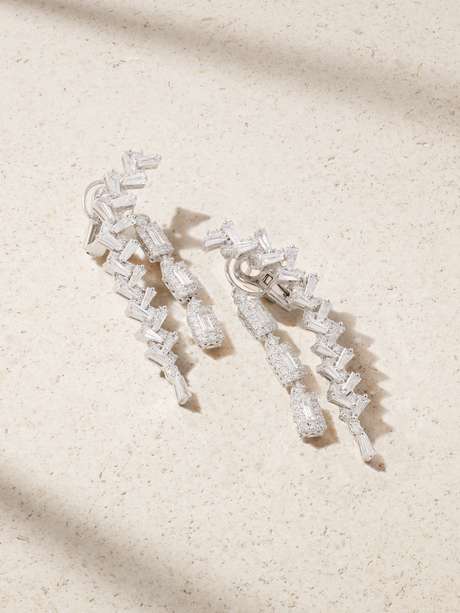 YEPREM's earrings look like two heirloom styles stacked together. They're handmade from 18-karat white gold and set with 160 diamonds, totaling 5.91-carats.