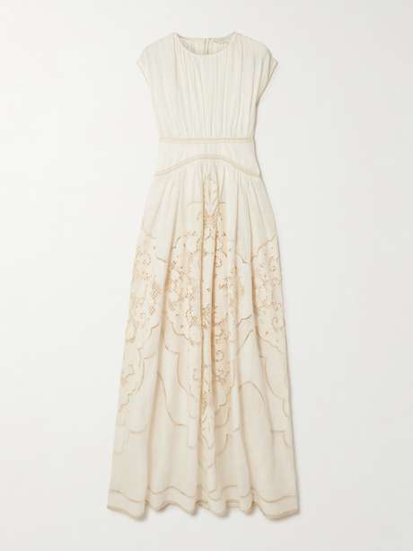 Zimmermann's 'Daylight' dress is made from linen with a decorative broderie anglaise skirt. It's gathered through the bodice and has a paneled waist to highlight your natural shape.