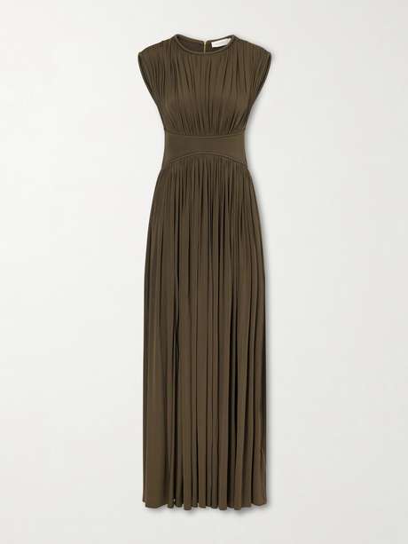 Zimmermann's 'Luna' maxi dress is constructed with micro-pleated satin-jersey in a signature mossy green. It features a wide shoulder and paneled waistband, contrasting its delicate construction with a strong silhouette. Style yours with a sophisticated heel to elevate its floor-length hemline.