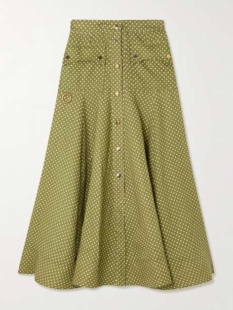 ZIMMERMANN Luna embellished polka-dot linen midi skirt