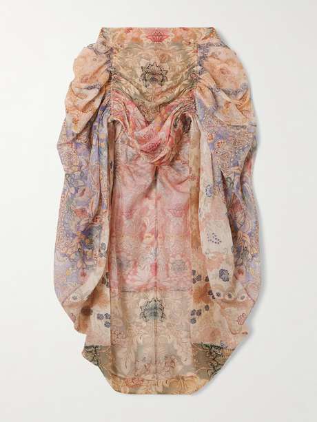 Zimmermann's skirt is from the aptly named 'Twisted Romance' collection. Made from diaphanous linen and silk-blend, it's artfully ruched through the front, creating a dramatic drape and cascading hem.