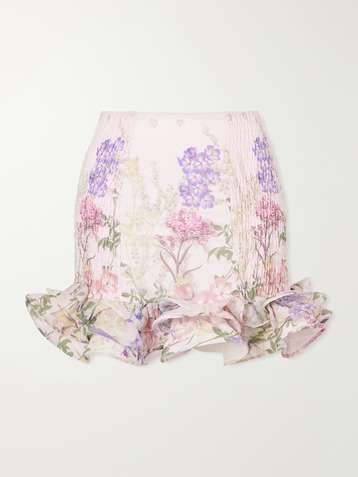 Floral ruffled cotton-blend mini skirt