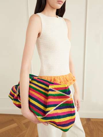 Tropicus embellished leather-trimmed woven shoulder bag