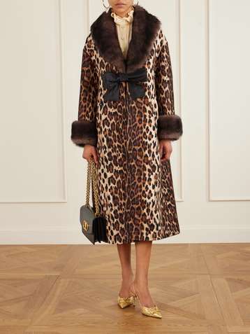 Bow-embellished shearling-trimmed leopard-print wool coat