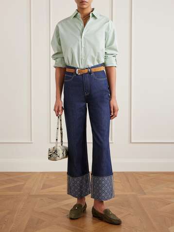 The Californian frayed two-tone mid-rise wide-leg jeans