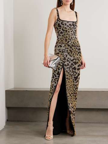Aida pleated ruffled floral-print metallic silk-chiffon gown