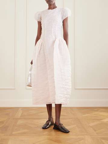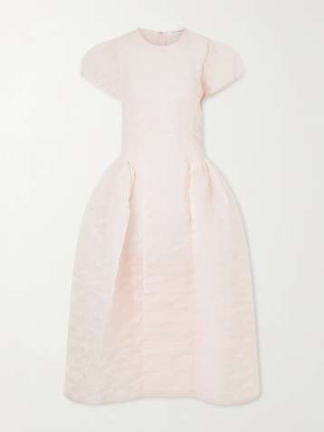 Twinflower gathered ribbed-knit and wool and silk-blend crepe midi dress