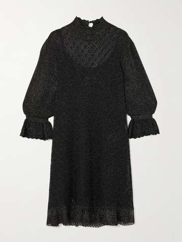 Shirred metallic knitted mini dress