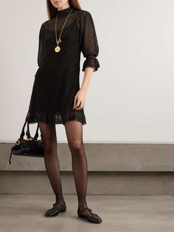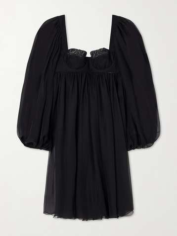 Pleated lace-trimmed silk and cotton-blend voile mini dress
