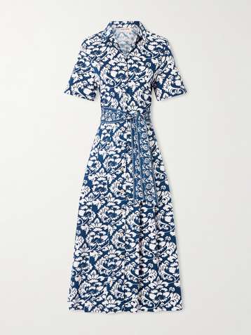 Belted printed silk-twill dress