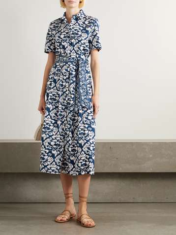 Daylight belted printed linen mini dress