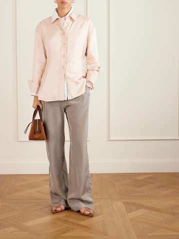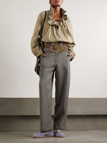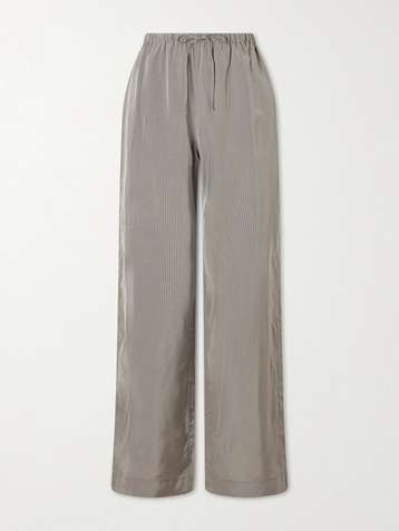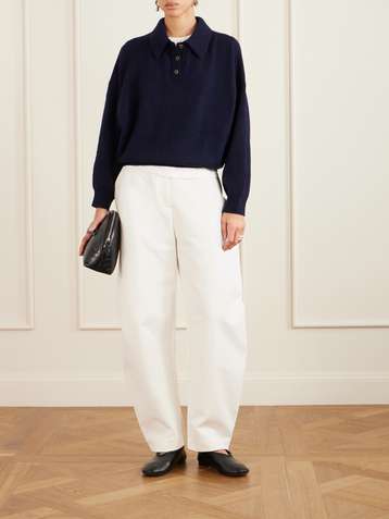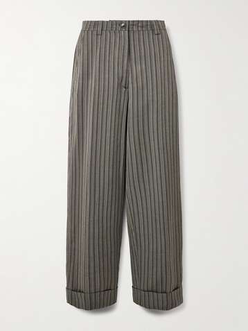 Embroidered French cotton-blend terry wide-leg sweatpants