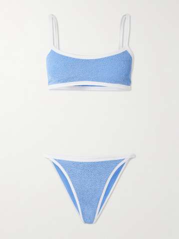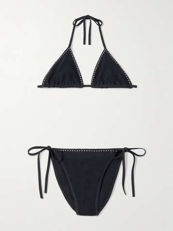 Mare sequin-embellished striped metallic crochet-knit triangle bikini