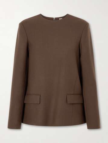 Off-the-shoulder striped TENCEL™ Lyocell and linen-blend blouse