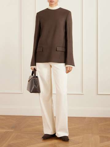 Ruffled broderie anglaise-trimmed taffeta blouse