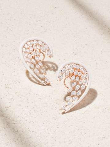 Angel Wings 18-karat rose gold, diamond and enamel earrings