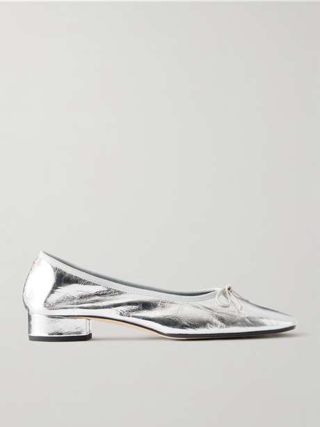 Aeyde's shoes are crafted by family-run factories in Italy. These 'Onda' pumps are made from crinkled metallic leather with classic rounded toes and a sweet bow.