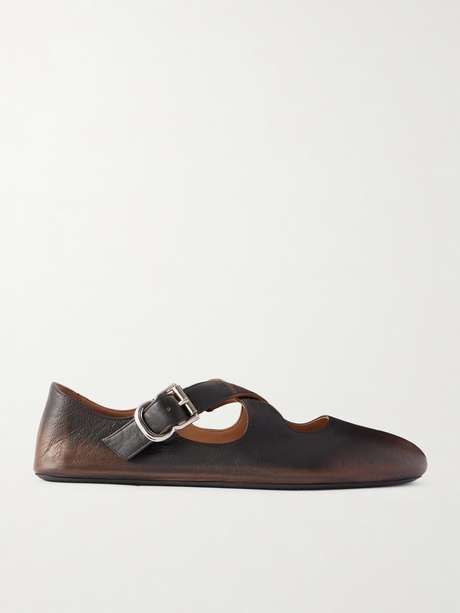 Alaïa's ballet flats are named after the wide 'Criss Cross' straps, which are inspired by traditional Japanese shoes. They've been crafted in Italy from aged-effect leather and embellished with geometric buckles. Wear yours with one of the label's sculptural dresses.