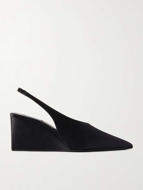 Alaïa's satin wedges heighten the glamour of any look. The pointed toe adds an elegant touch, while the distinctive cubic heel is an instant statement-maker. Wear yours with tailoring.