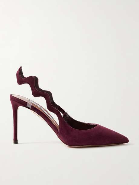 Aquazzura's 'Artiste' pumps showcase the brand's skill when it comes to creating striking, contemporary footwear. Made in Italy from suede in a deep 'Blackberry' shade, they have a scalloped, elasticated slingback strap and angular, pointed toe. Short hemlines will keep the detail in focus.
