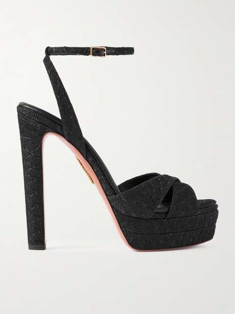 AQUAZZURA Divine Plateau 130 metallic woven platform sandals