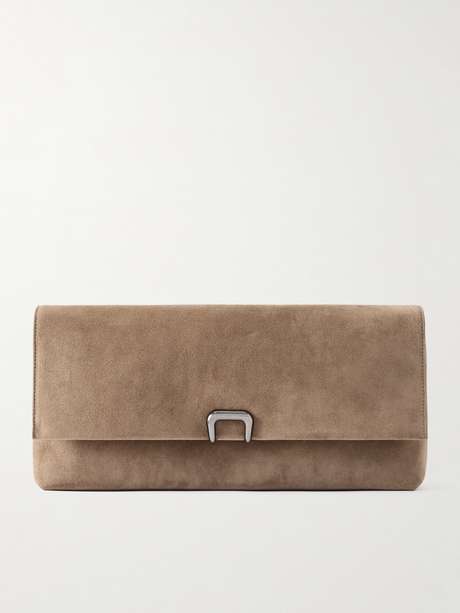 Brunello Cucinelli's clutch is the definition of simple elegance. Made from soft suede, it has a semi-structured shape and refined silver-tone clasp. It'll fit some cards, a compact and lipstick, plus any valuables in the zipped pocket.