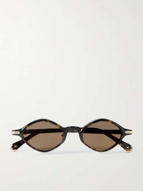 There's a sense of vintage glamour to Cartier Eyewear's sunglasses. Crafted from tortoiseshell acetate, they have slightly angular round frames with tonal lenses. The gold-tone hardware matches the foiled logo lettering along the arms.