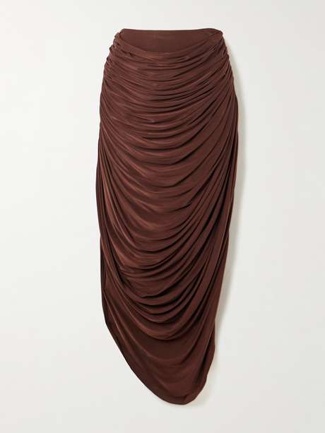 DANIELLE FRANKEL Vivienne gathered stretch satin-jersey midi skirt