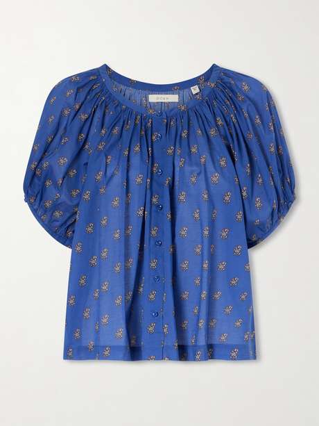 DÔEN’s 'June' cotton top is patterned with delicate florals and shaped with softly puffed sleeves and a gathered neckline. A row of buttons traces the front, while the hem falls to a floaty hem. Style it with jeans or skirts on warm days.