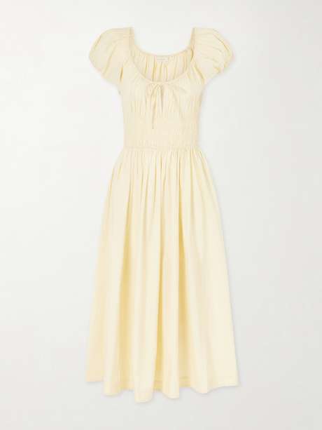 EXCLUSIVE AT NE-A-PORTER. DÔEN’s 'Quinn' cotton-poplin dress has a softly gathered neckline framed by short puffed sleeves. The smocked bodice defines the waist before falling to a long, fluid skirt that moves beautifully as you walk. Style it with simple sandals or ballet flats.