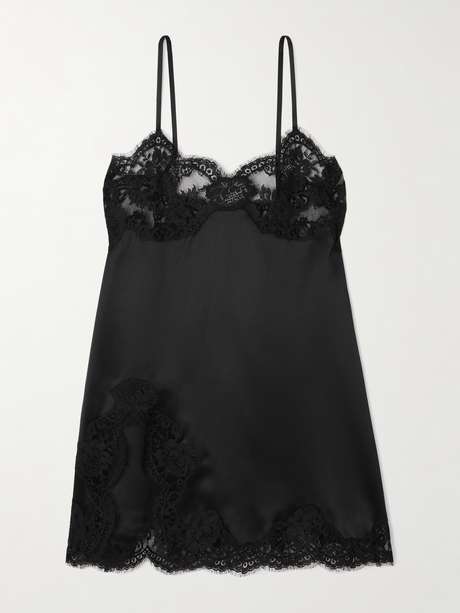 Inspired by modern street style, Dolce&Gabbana's Fall '25 collection blends classically feminine styles with grungy influences. This dress is made from glossy silk-blend satin with lace trims, so it resembles vintage lingerie. It was styled with a leather trench and over-the-knee boots for the runway.