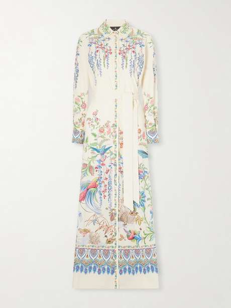 Capturing Etro's romantic aesthetic, this shirt dress is printed with an ethereal mix of paisley swirls, and floral and botanical motifs. It's cut to a loose floor-length profile from crisp cotton and cinched at the waist with a self-tie belt. Pleated, mitered cuffs showcase the label's tailoring prowess.