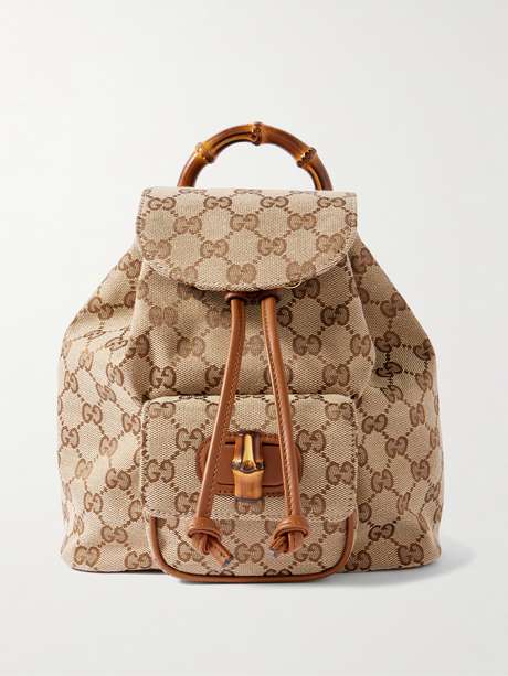 GUCCI Bamboo small leather-trimmed canvas-jacquard backpack