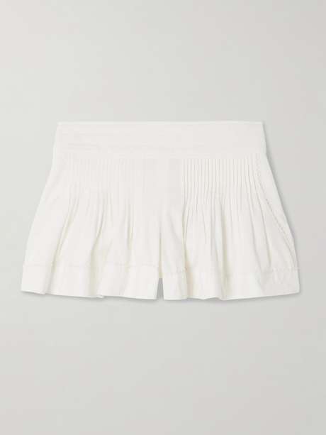 Isabel Marant's 'Cybila' shorts give them that relaxed, bohemian look. Cut to break high on the leg, they're pintucked through the front to define the shape along the pockets, and hemmed with French knots. Wear yours on vacation with sandals and a fringed bag.