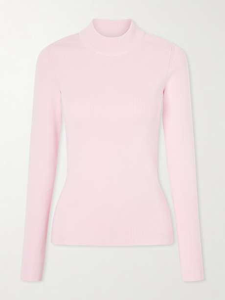 Jil Sander’s sweater reflects the label’s pared-back approach to design. Ribbed for a close fit, it’s defined by a high neckline and bright baby pink that emphasizes the streamlined silhouette.